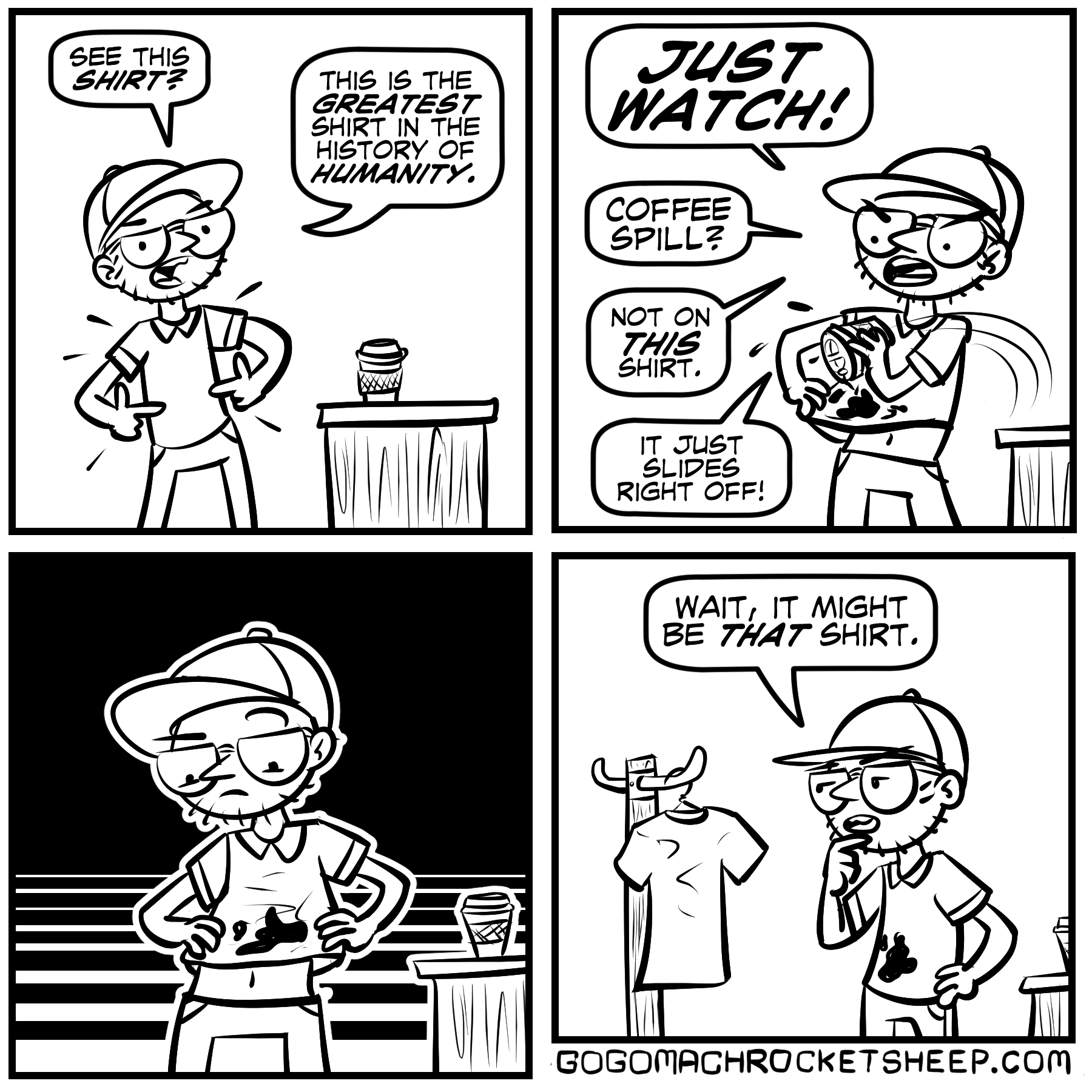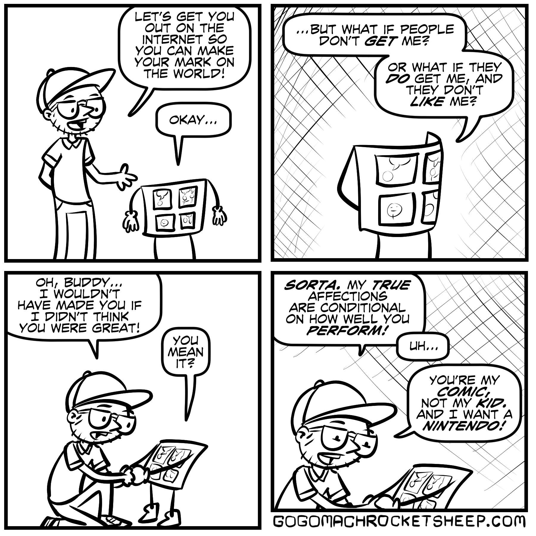 This is about as preachy as I get these days. Back when I was a preacher, I’d get more preachy, but these days, I just make grumpy comics about real internet conversations I’ve had featuring anonymous characters making straw man arguments. Somebody’s gotta tilt at all these windmills, you know?!