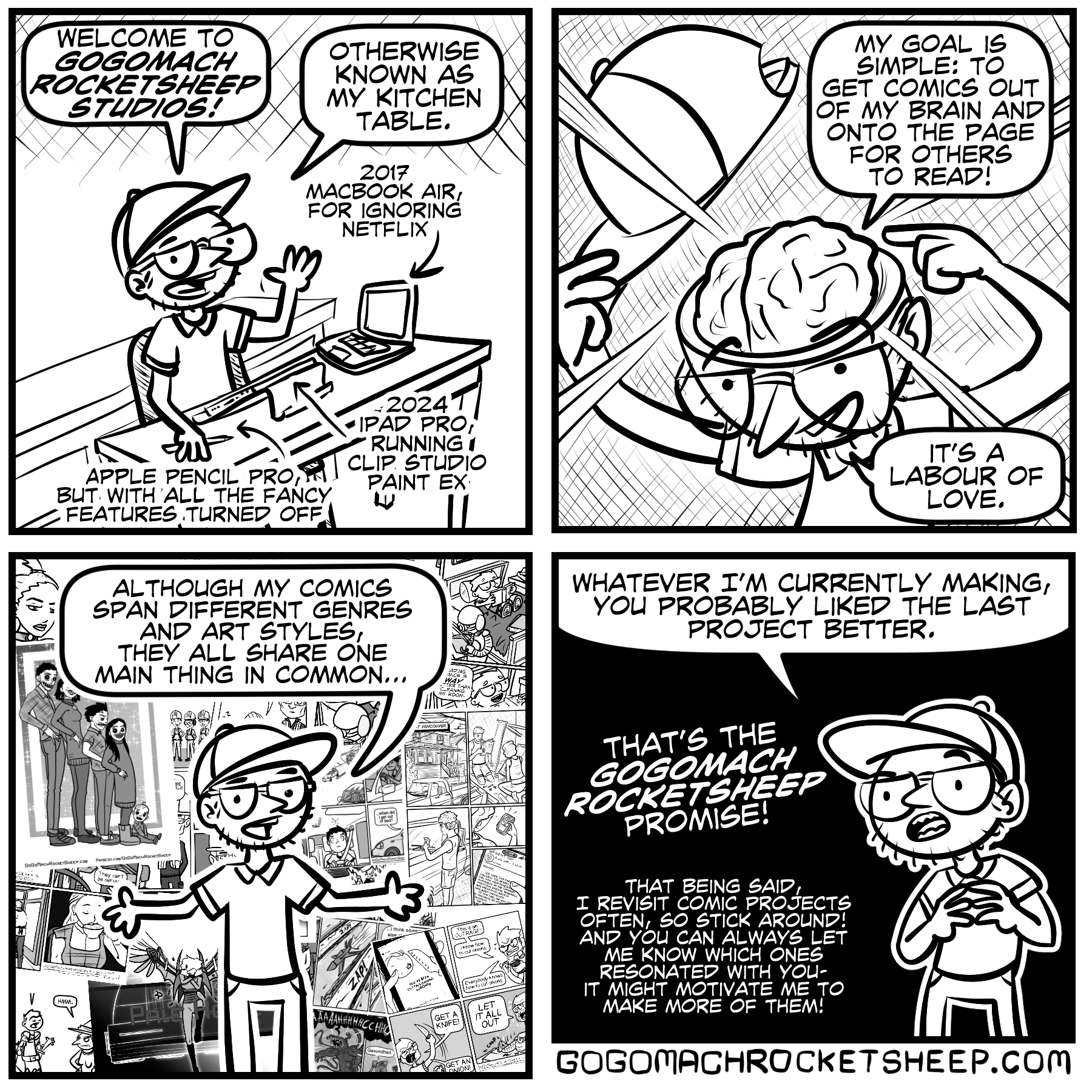 I have a limited amount of time to make comics in a day… Sometimes I prefer to make gag comics that can get finished in that limited amount of time, and sometimes I prefer to spread that time over months and make something bigger and more substantial. I think I’m coming back around to wanting to make something bigger again!